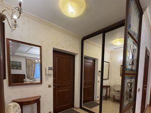 Главное о квартире. Квартира с 2-мя спальнями общей площадью 75 м² находится в историческом особняке на Патриарших прудах. Внутри выполнена стильная отделка в современном стиле, встроенная кухня оснащена посудомоечной машиной, духовым шкафом и кофеваркой. В квартире установлена качественная мебель, сантехника, кондиционеры. В квартире спланирована кухня-гостиная, 2 спальни, одну из которых можно использовать как кабинет, просторный санузел, холл. Окна квартиры выходят во внутренний двор.