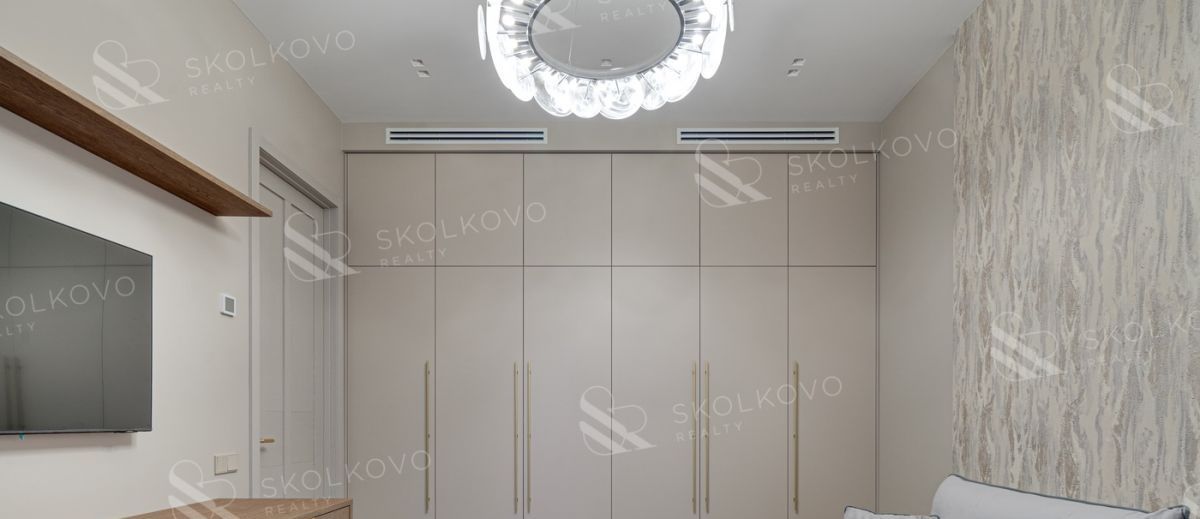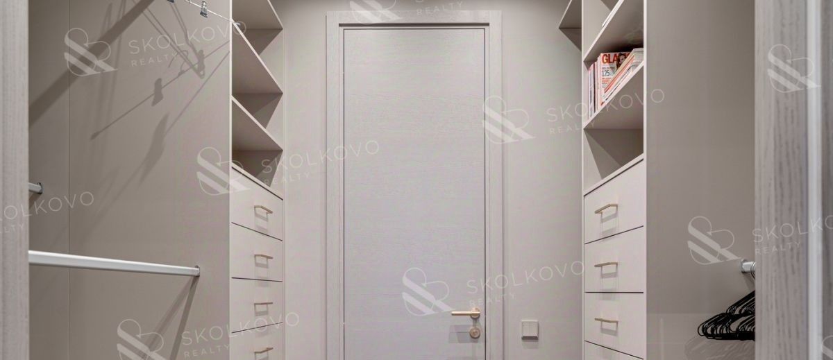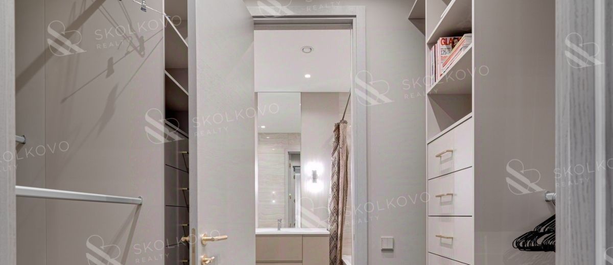 Мастер-спальню с гардеробной и отдельным санузлом, создающую уединение и комфорт.