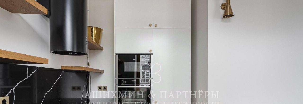 Кухня укомплектована бытовой техникой Neff. В квартире установлены стиральная и сушильная машины Asko. В спальне расположен камин. В комнатах размещены кондиционеры и подогрев полов.