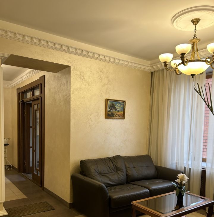 Квартира с дизайнерским ремонтом, оборудована всем необходимым для комфортного проживания. В кухне (10 кв. м) вы найдёте современную мебель и технику, включая холодильник, посудомоечную машину и кондиционер. В комнатах также есть вся необходимая мебель. Санузлы раздельные: один совмещённый с ванной и душевой кабиной, второй отдельный. Есть две лоджии, окна выходят во двор, поэтому в квартире тихо и уютно.