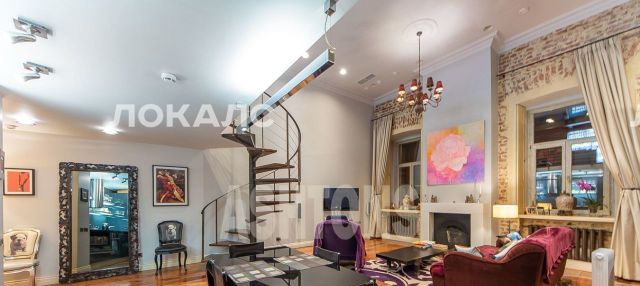 Предлагается в аренду роскошная двухуровневая квартира по адресу: Староконюшенный переулок 33, ЦАО, р-н Арбат. Исторический дом 1901 года постройки.