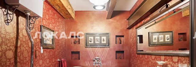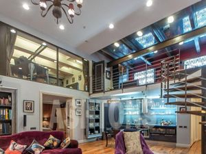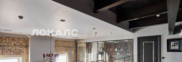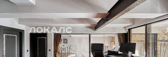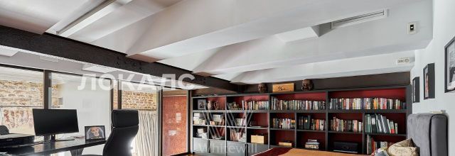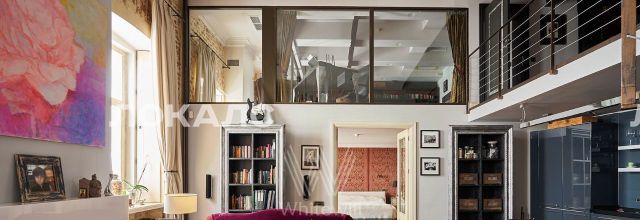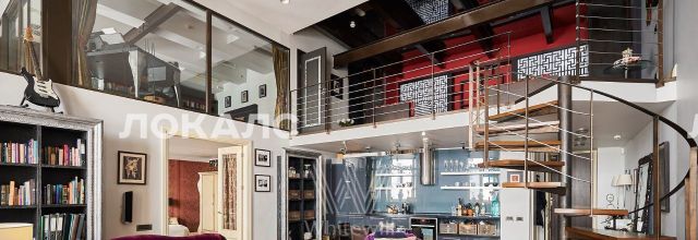 Бонус партнёрам 50%. Двухуровневая квартира с 2-мя спальнями общей площадью 152 м² в отреставрированном особняке в переулке Арбата. Квартира расположена на 3-м этаже. Выполнен дизайнерский ремонт в авторском стиле. Полы выложены натуральным орехом, часть стен оформлена открытой кирпичной кладкой, в гостиной и спальне установлены действующие камины. Благодаря потолку высотой 6 метров и большим окнам пространство наполнено естественным светом и воздухом.
