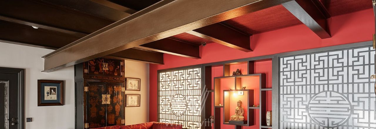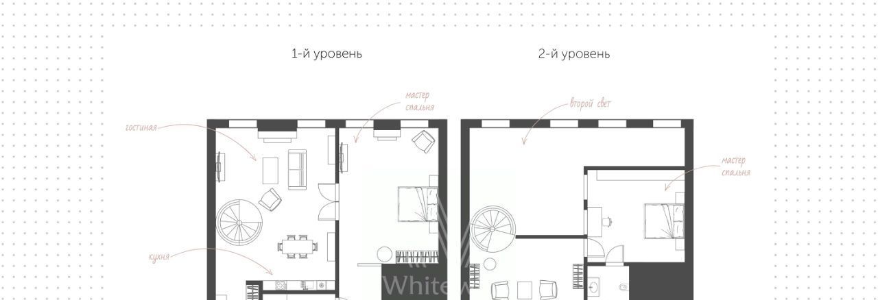 На 1-м уровне спланирована кухня-гостиная с обеденной зоной, мастер-спальня с санузлом, прихожая. На втором уровне расположены комната отдыха в китайском стиле со старинными восточными литографиями и кабинет, который можно использовать как вторую спальню, с ванной комнатой. Квартира полностью укомплектована эксклюзивной мебелью Armani, Provasi и Ego, ковры Marni. А так же, оборудована бытовой техникой Kuppersbusch, TV Sony, кондиционеры Daikin.
