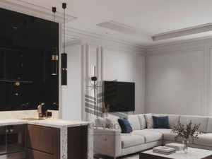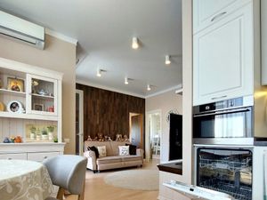 Квартира имеет функциональную планировку: кухня + гостиная, две изолированные комнаты одна из них спальня с ванной комнатой, гардеробная, балкон. Полностью меблирована и укомплектована. Приточно-вытяжная система кондиционирования. Высота потолков 3,3 м.