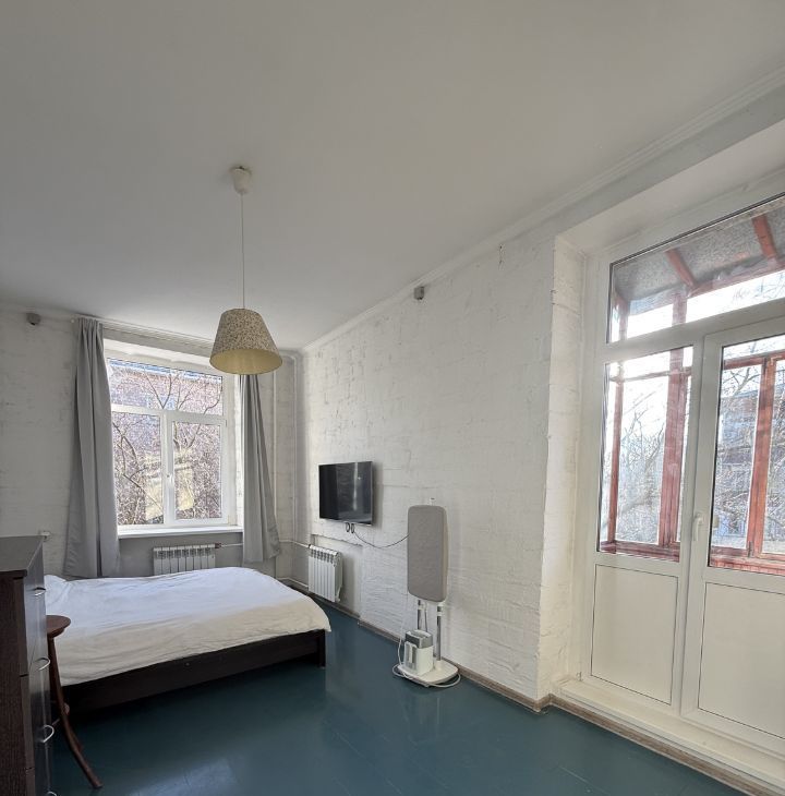 Дом — сталинка, 4 этаж из 5, подъезд с лифтом. Площадь 66,4 м², потолки 3,2 м. Квартира угловая, поэтому здесь много света и воздуха, толстые стены держат тепло зимой и прохладу летом, а на случай жары есть кондиционер.