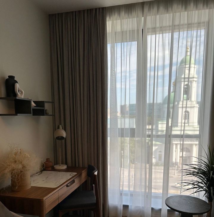 Интерьер выполнен в современном минималистичном стиле: светлая цветовая гамма, натуральные фактуры, дизайнерская мебель и продуманное освещение создают атмосферу уюта и эстетики.