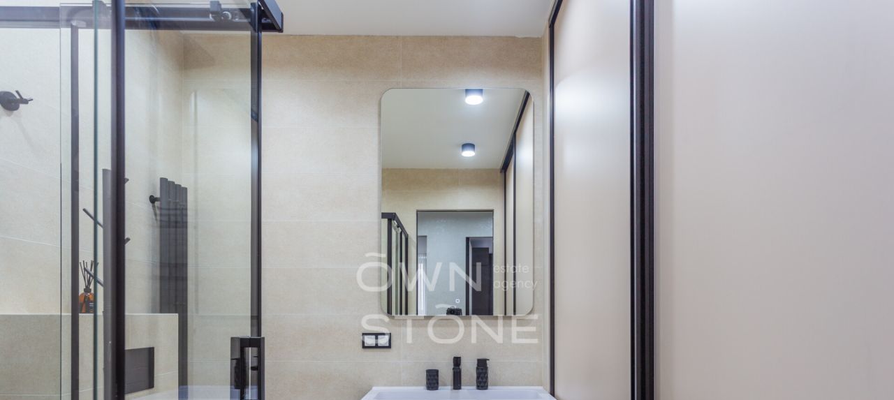 Планировка: просторная кухня-гостиная, мастер-спальня, кабинет (может использоваться как вторая спальня), санузел с душевой кабиной, теплые полы по всей квартире. Окна во двор. Мебель докупается под запрос арендатора. В квартире очень тихо.