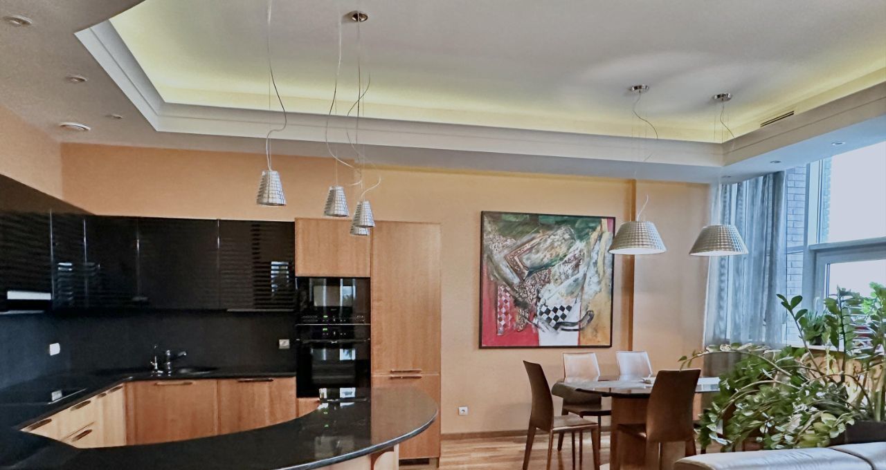 (1 комната свободного назначения, частично меблирована), встроенная кухня, раскладной вместительный диван, гардеробная, кабинет, 2 санузла (ванна и душ), встроенные шкафы, много мест для хранения. Максимальный комфорт для приема гостей. На этаже всего 3 квартиры, что обеспечивает абсолютную камерность. Статус и приватность обоснованы близостью к Кутузовскому проспекту и Деловому центру, что по определению является местом обитания бизнес- и политической элиты. Закрытая придомовая территория. Консьерж-служба обеспечивает многоуровневую систему безопасности 24/7.