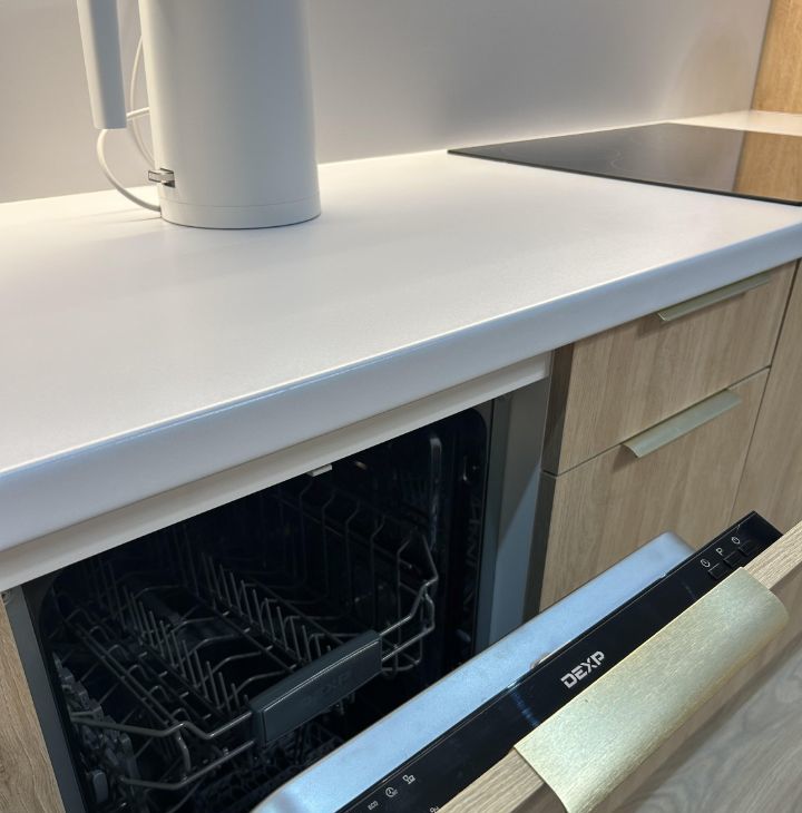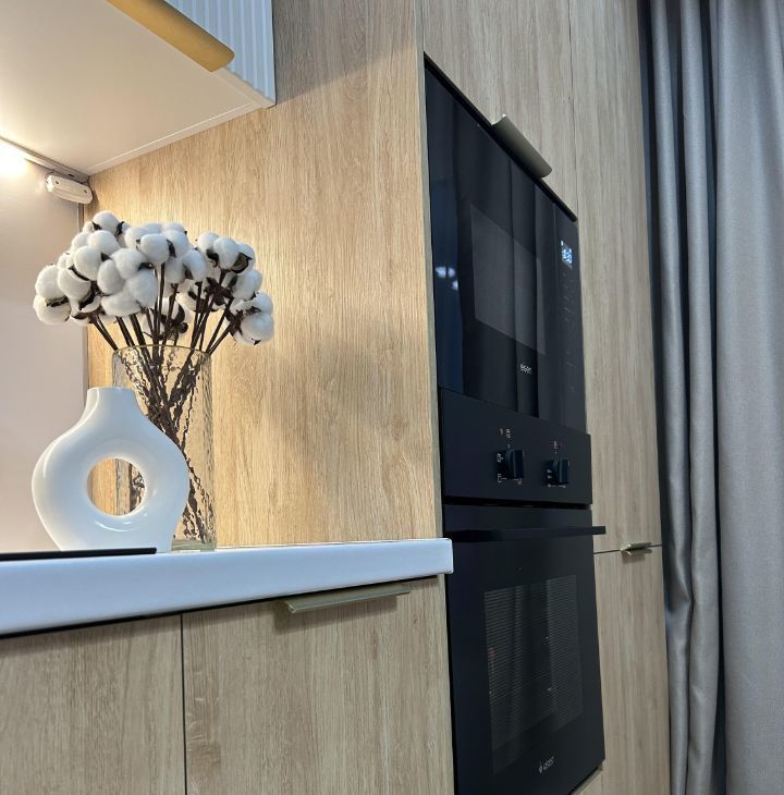 -встроенная техника: холодильник, посудомоечная машина, духовой шкаф, варочная панель, микроволновая печь, вытяжка, чайник;