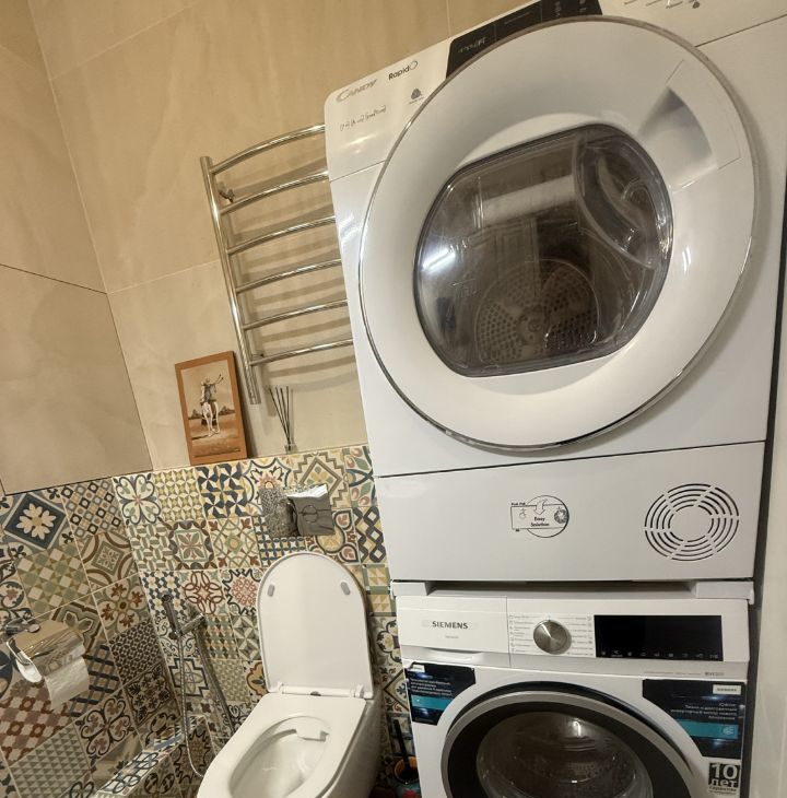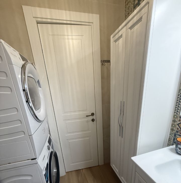 — фильтр с обратным осмосом, можно пить воду прямо из-под крана. Стиральная и сушильная машины, бойлер, кондиционеры в каждой комнате. Два телевизора. На окнах установлены москитные сетки и солнцезащитные пленки.