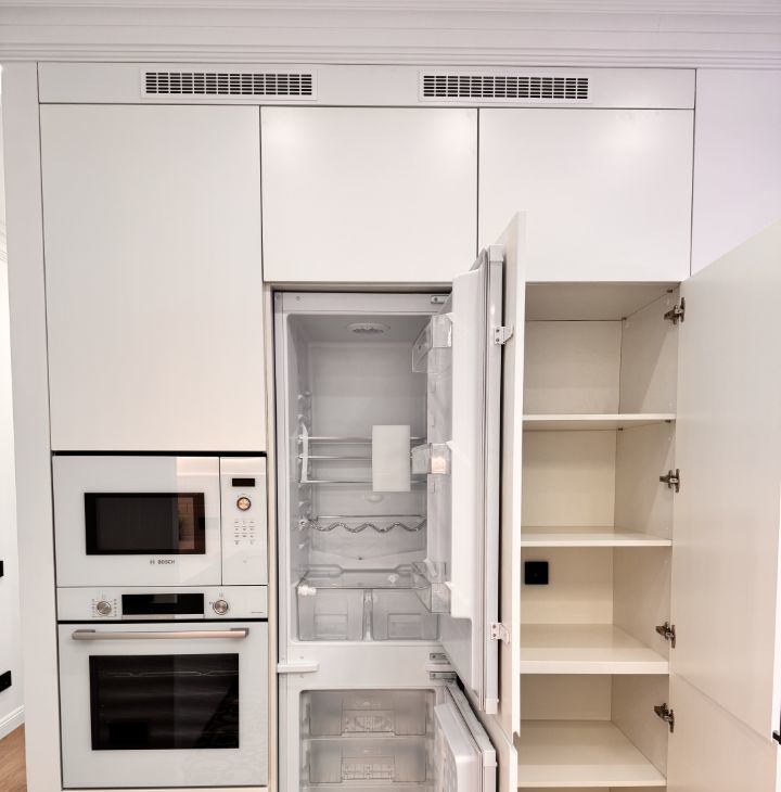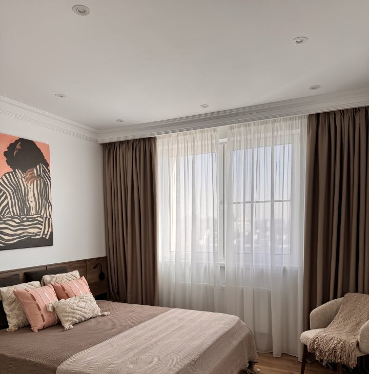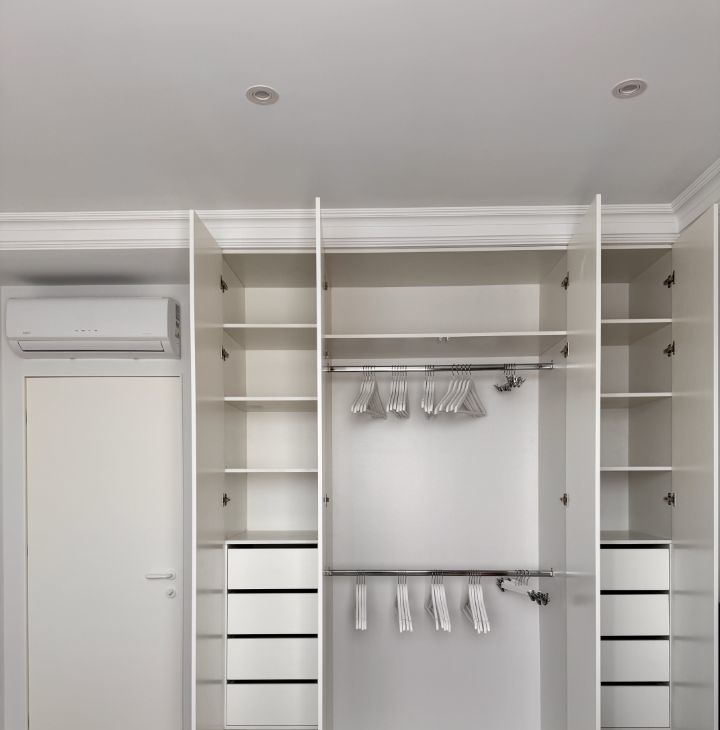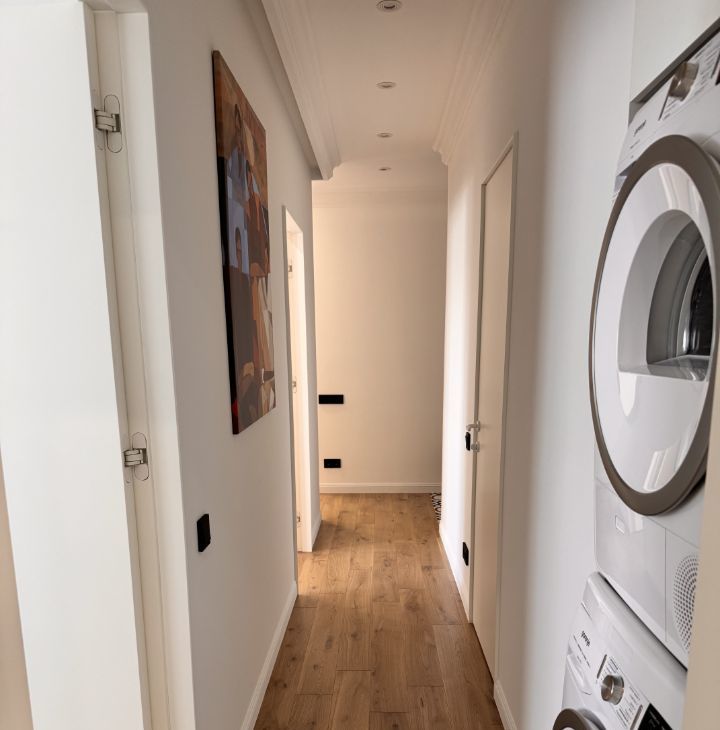 2 изолированные спальни с мебелью выполненной под заказ, отдельная гардеробная и кухня гостиная. На кухне вся техника Bosh! Посудомоечная машина полноразмерная.