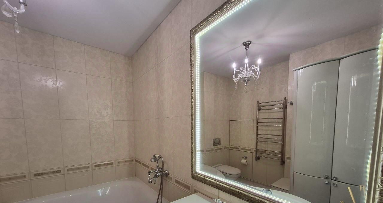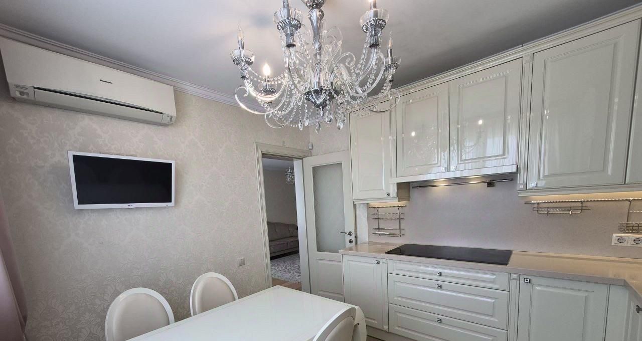 Квартира радует стильным дизайном и функциональной планировкой, продуманной до мелочей. В наличии три комнаты, одна из которых может быть использована как гостиная или рабочий кабинет. Кухня полностью оборудована современной мебелью и техникой, в том числе кондиционером, холодильником, посудомоечной машинкой. В квартире есть как совмещённый, так и отдельный санузел, в одном из которых находится бойлер на большое количество воды. Из окон открываются виды на улицу и во двор. Лоджия дополнительно увеличивает пространство для отдыха.