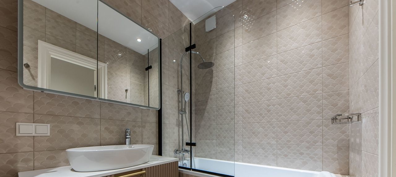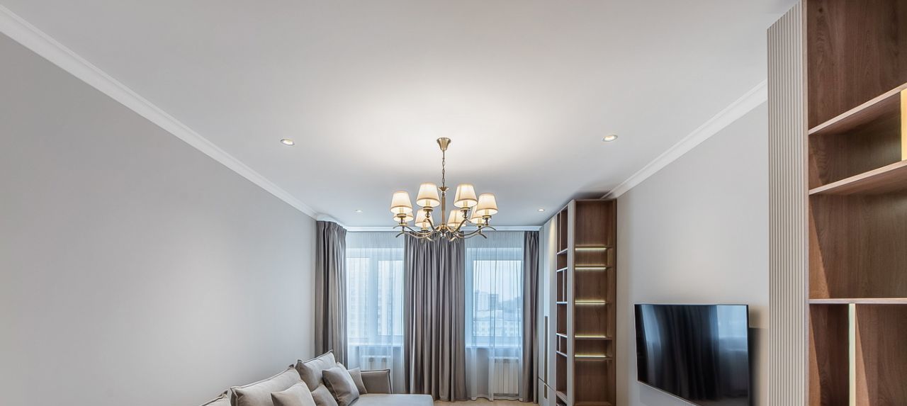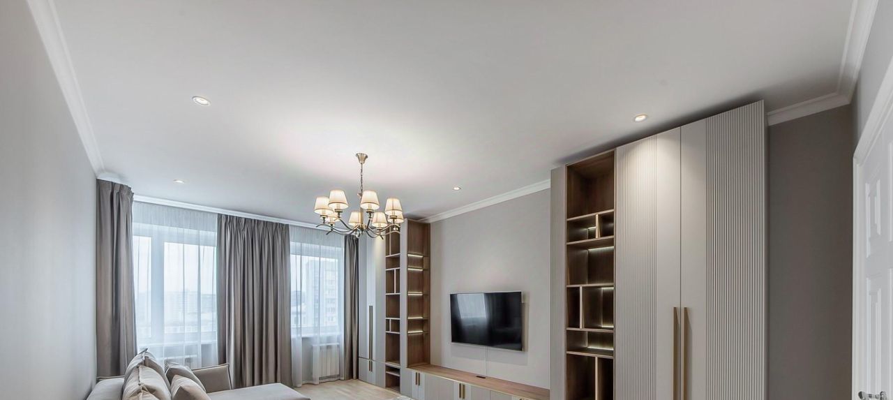Квартира оформлена с дизайнерским ремонтом. Внутри есть всё необходимое для комфортного проживания: кондиционер, холодильник, посудомоечная и стиральная машины, телевизор. На кухне и в комнате установлена современная мебель. В квартире два совмещённых санузла, оборудованных ванной и душевой кабиной. Лоджия приятное место для отдыха с видом на двор.