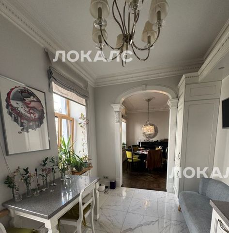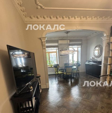Сдаётся в аренду на длительный срок уютная квартира в одном из самых престижных районов Москвы — в пешей доступности от Патриарших прудов. Квартира расположена на 3-м этаже 6-этажного дома. Общая площадь составляет 96.5 кв. м, жилая — 62.1 кв. м. До станции метро "Пушкинская" всего 7 минут пешком. Двор огорожен, возможна парковка в закрытом дворе за дополнительную плату