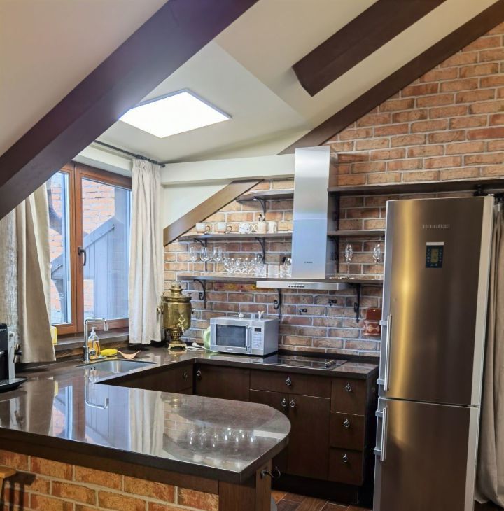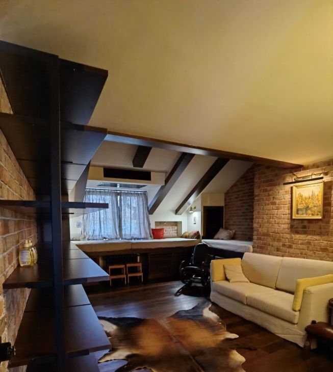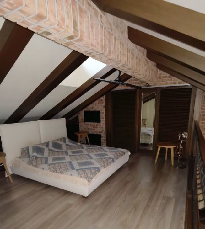 Предлагаем в долгосрочную аренду просторную квартиру на мансардном этаже 3-этажного дома. Общая площадь квартиры 133.3 кв.м., с просторной кухней-гостиной, спальней, с отдельной прачечной.