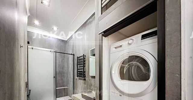 В квартире: Парковка, Посудомоечная машина, Стиральная машина, Душевая кабина, Кондиционер, Видеонаблюдение, Интернет, Можно с детьми, Газовая колонка, Ванна, Лофт, Консьерж, Лифт, Окна на улицу, Окна во двор