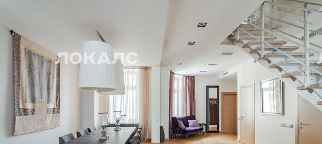 ID 36155. Просторный стильный 3-комнатный пентхаус в фасадном доме в районе Арбата. Дизайнерский ремонт. В квартире установлена качественная мебель и установлено современное оборудование: посудомоечная машина, холодильник, приточно-вытяжная система вентиляции и кондиционирования, стиральная машина, сушильная машина, подогрев полов. Общая площадь: 265 кв. м. Планировка: огромная гостиная, оборудованная кухня, просторная столовая, 2 спальни, 3 ванные с душевой кабиной и ванной, постирочная комната. В стоимость включены 2 места в подземном паркинге. Дом расположен в тихом переулке в районе Арбата, где богатая культурная, образовательная и деловая инфраструктура в пешей доступности. С детьми можно.