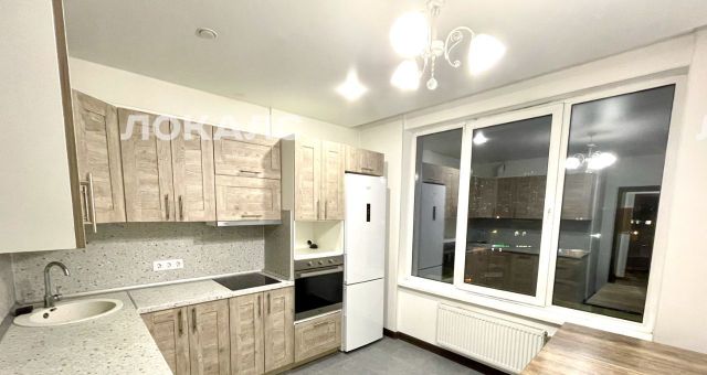 - кухня 12м2 с кухонным гарнитуром на заказ, холодильником, электрической плитой и духовым шкафом;