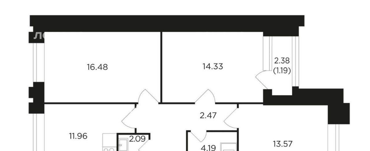 - 3 просторных, светлых комнаты (16,5м2, 13,5м2, 14,3м2 + 3м2 лоджия);