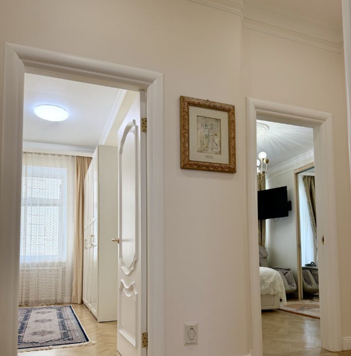 Квартира после капитального ремонта сдается в первый раз. Светлая, просторная, уютная и тихая. Окна и балконы выходят на две стороны: на Тверскую и во двор. Мебель и картины - произведения искусств. Квартира подойдет ценителям роскошной классики.