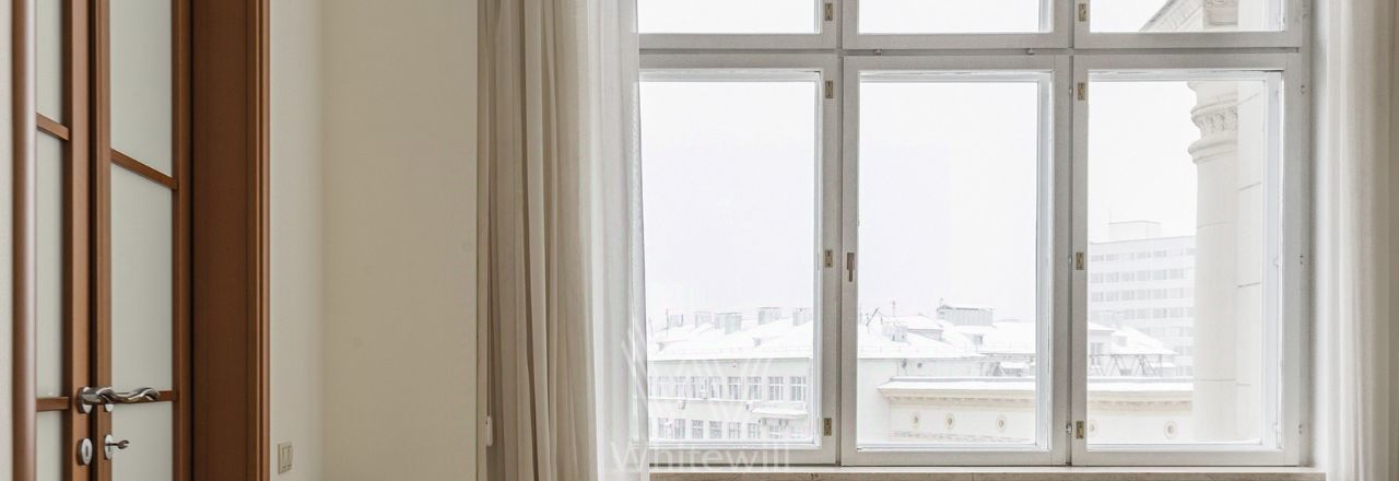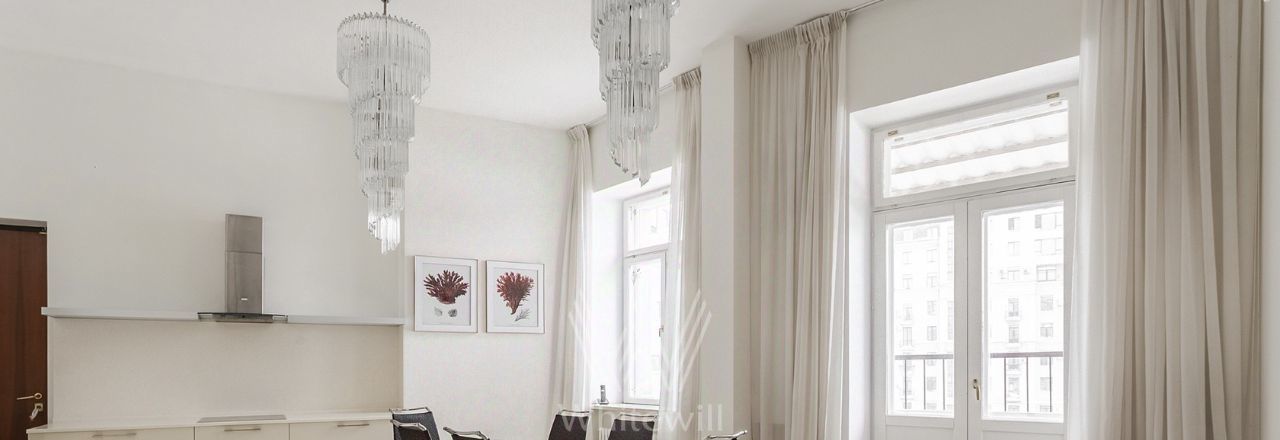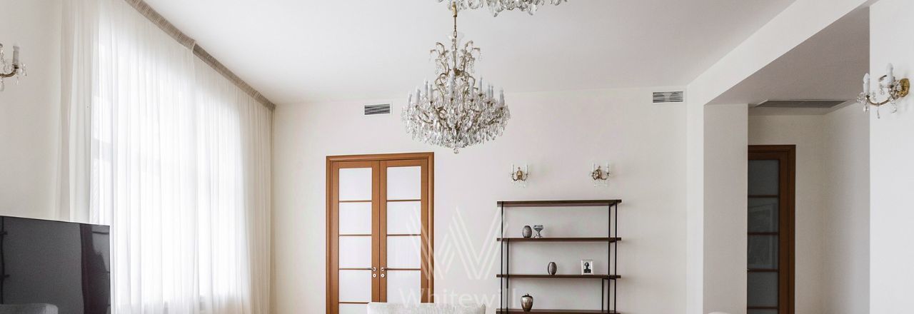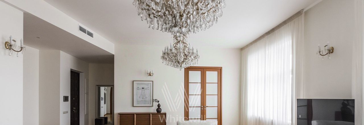 Бонус партнёрам 50%. Просторная квартира площадью 140 м² на знаменитой Тверской улице с видом на Кремль. Выполнена современная отделка в лаконичных светлых тонах. Большие окна, высокие потолки. Планировка: просторная гостиная, кухня-столовая с выходом на балкон, спальня со своим санузлом с душем, вторая спальня, санузел. В мастер-спальне и гостиной совершенно новая мебель. Квартира укомплектована бытовой техникой, установлена система кондиционирования, стиральная и посудомоечная машина. Стихийный паркинг во дворе за шлагбаумом.