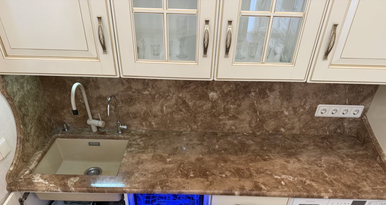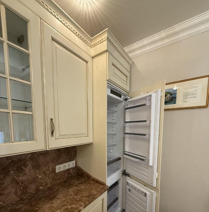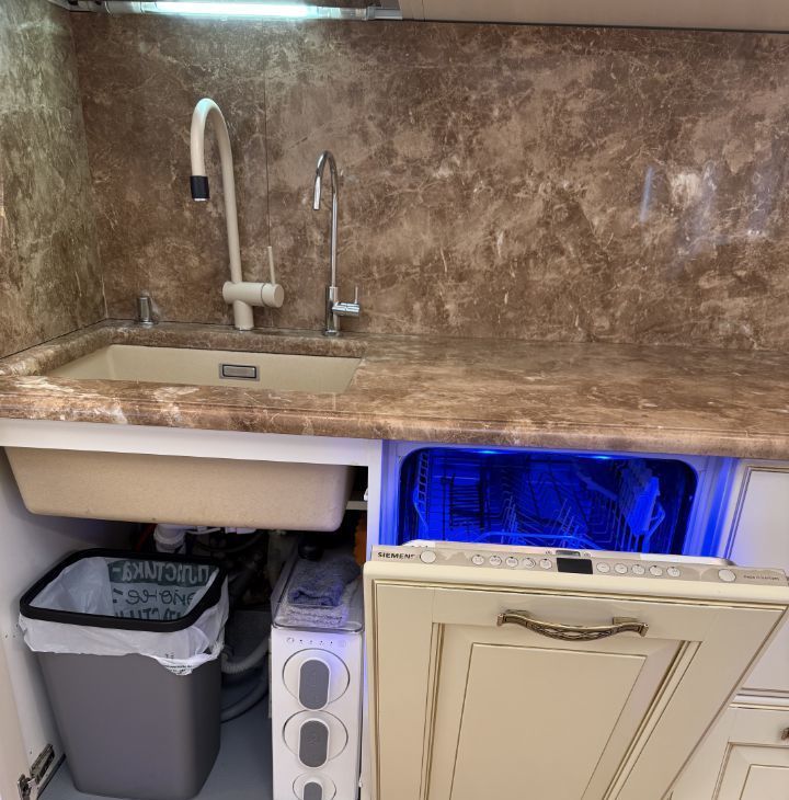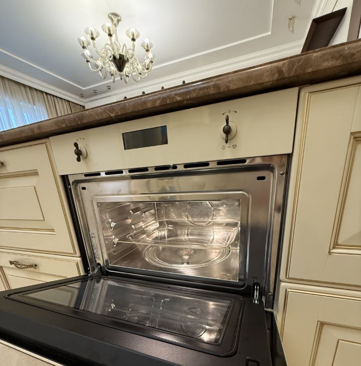 Бытовая техника: Smeg, Siemens, KitchenAid и др. Сантехника и смесители: Villeroy&Boch, Blanco и др. На кухне установлен новый фильтр для воды обратного осмоса.
