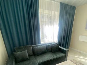 Имеется вся необходимая мебель как в комнатах, так и на кухне. Из техники: кондиционер в каждой комнате, холодильник, телевизор, посудомоечная и стиральная машины. Санузлы совмещенные, их два, что очень удобно для большой семьи. В одном санузле есть ванна, в другом — душевая кабина. Также в квартире есть два балкона, откуда открывается вид на тихую улицу. Высокие потолки 3 метра создают ощущение простора и свободы.