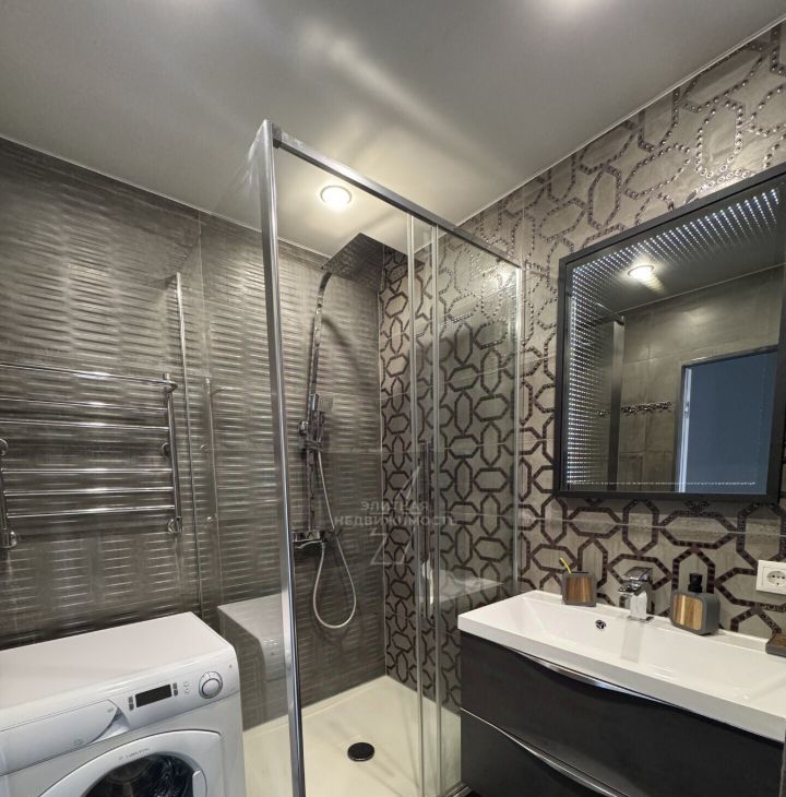 полностью оборудована мебелью и техникой для комфортного проживания. В кухне установлена посудомоечная машина, духовой шкаф, индукционная варочная панель и вытяжка всеоборудование абсолютно новое. В ванной комнате имеется душевая кабина с тропическим душем и термостатическим смесителем, а также стиральная машина.