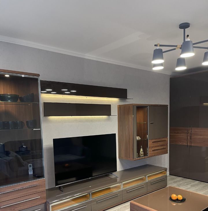 В квартире сделан капитальный и дизайнерский ремонт, она обставлена новой мебелью и оборудована современной техникой: холодильник, посудомоечная машина, СВЧ, газовая плита и электрический духовой шкаф, кондиционер, телевизор и стиральная машина.