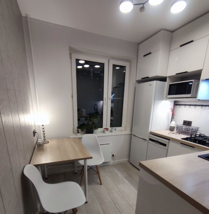 Не нужно ничего докупать. Вас встретит современный ремонт, новая мебель и надежная немецкая бытовая техника. Деревянные полы в комнатах.