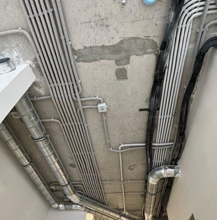 Скрытая разводка инженерных коммуникаций (электроосвещение, электрические сети, слаботочные сети, водопровод, канализация, кондиционирование)