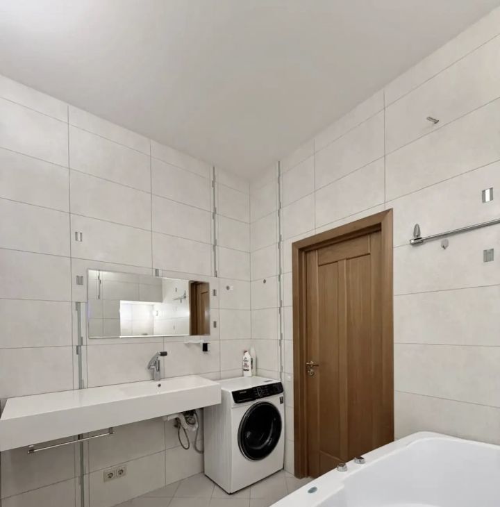 Разделена на зоны: две изолированные спальни, просторный зал, полноценная кухня, два санузла, две уютные лоджии и две гардеробные. Есть вся необходимая мебель и техника от именитых производителей. Шумоизоляция на высшем уровне. Открытая парковка во дворе.