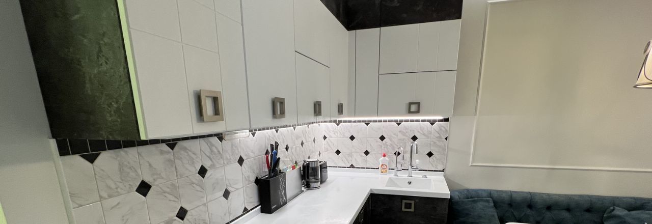 В квартире сделан современный дизайнерский ремонт, который придётся по вкусу даже самым взыскательным арендаторам. Комнаты обставлены мебелью, благодаря чему переезд станет комфортным и быстрым. На кухне есть всё необходимое: качественная мебель и современная техника, включая холодильник и посудомоечную машину. В гостиной установлен кондиционер и телевизор, а в ванной комнате — душевая кабина. Также в квартире есть стиральная машина. Окна выходят во двор, что обеспечивает тишину и спокойствие.