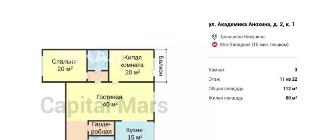 3-к кв. Москва ул. Академика Анохина, 2К1 (110.0 м²)