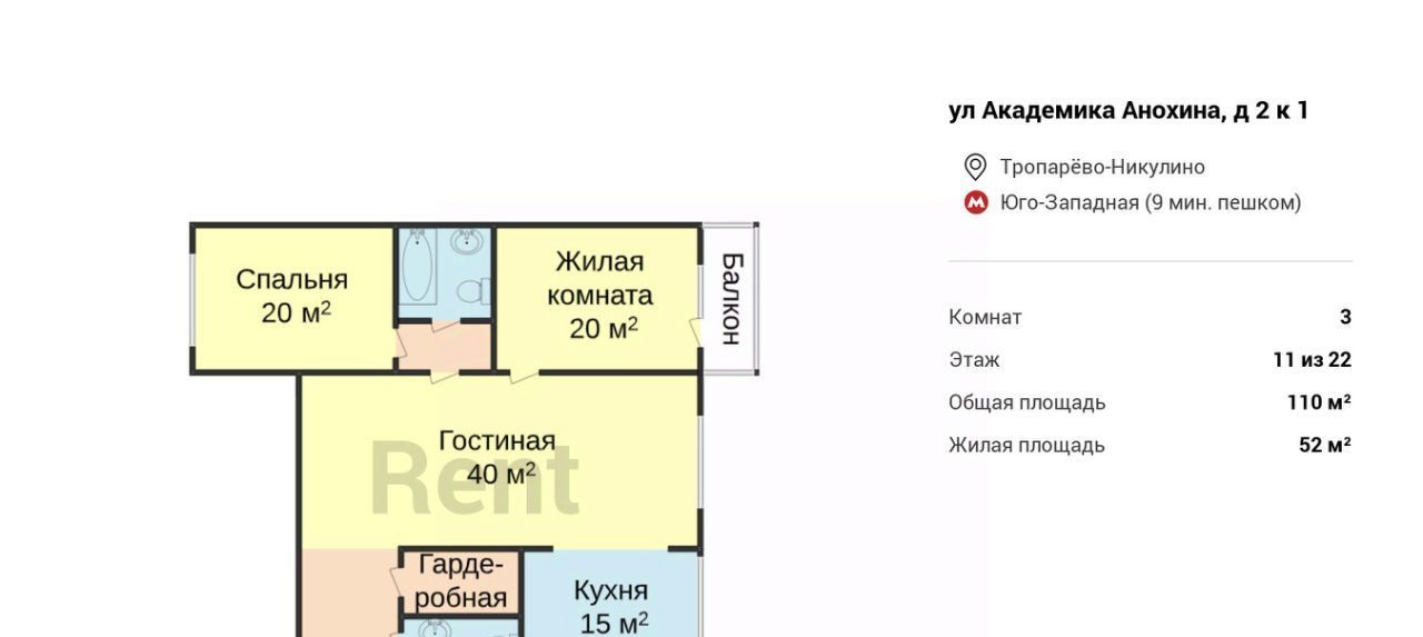 3-к кв. Москва ул. Академика Анохина, 2К1 (110.0 м²)