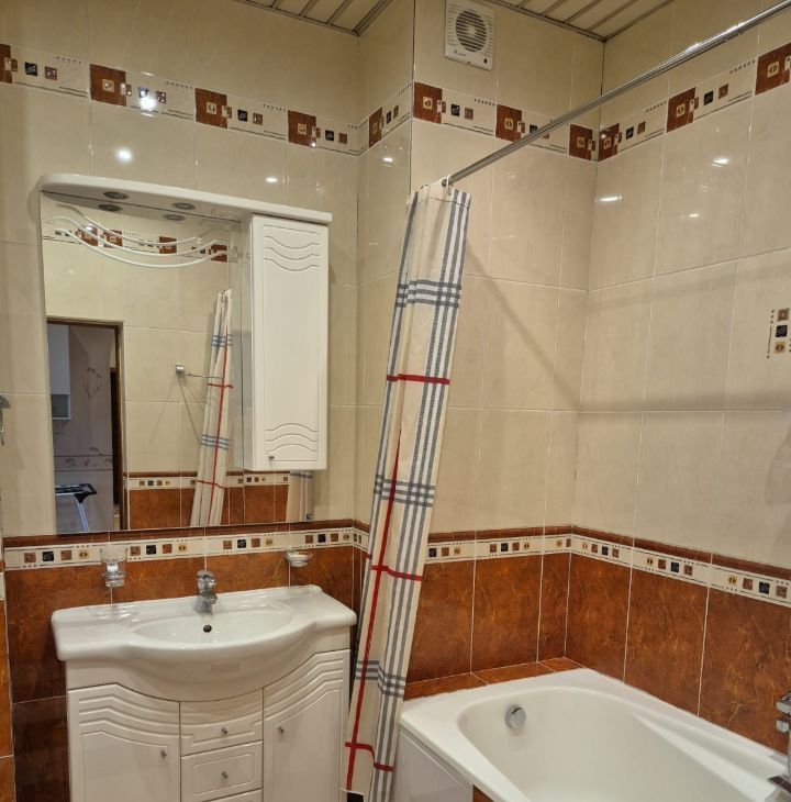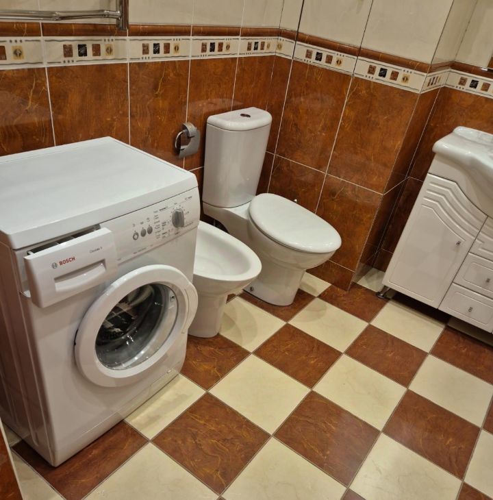 В квартире есть всё необходимое для комфортного проживания. Просторная кухня с мебелью и современной техникой, включая холодильник и посудомоечную машину. В комнатах также имеется вся необходимая мебель. В квартире установлены кондиционер и телевизор. Два совмещённых санузла оборудованы ванной и душевой кабиной.