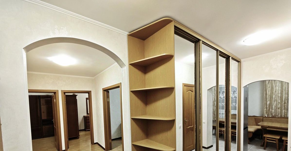 Вся необходимая мебель (покупка дивана обсуждается по запросу, большую коричневую стенку готовы вывезти ), встроенная кухня с бытовой техникой Bosch (есть посудомойка), холодильник Indesit, стиральная машина Bosch, новый кондиционер с инвертером (охлаждение, обогрев).