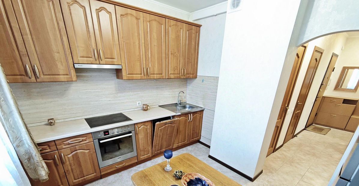 Вся необходимая мебель: гостиная, спальня. одна комната пустая, покупка дивана обсуждается, встроенная кухня с бытовой техникой Bosch (есть посудомойка), холодильник Indesit, стиральная машина Bosch, новый кондиционер с инвертером (охлаждение, обогрев).