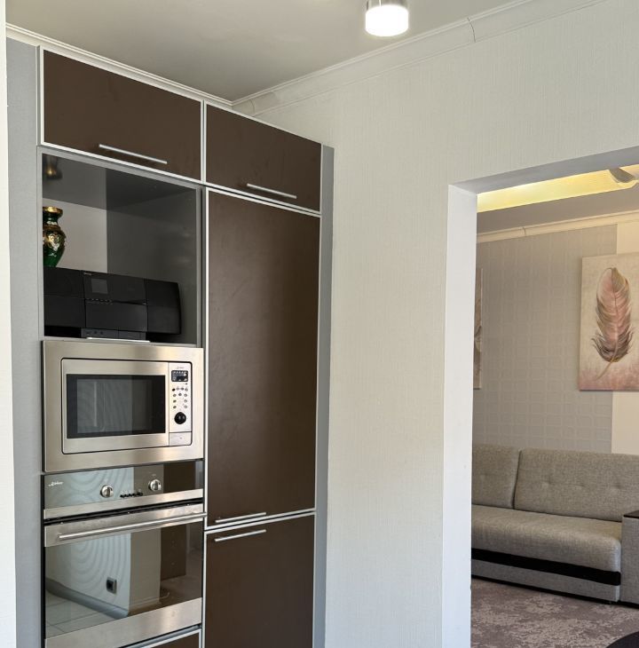 Сдается уютная трехкомнатная квартира на длительный срок. Кухня-гостиная, две изолированные спальни. Квартира полностью мебелирована и готова к заселению. Санузел совмещенный, имеется вся необходимая техника на кухне, а также СВЧ, посудомоечная машина. Ванная оснащена стиральной машиной, имеется гладильная доска, утюг и кондиционеры. Окна выходят на две стороны.