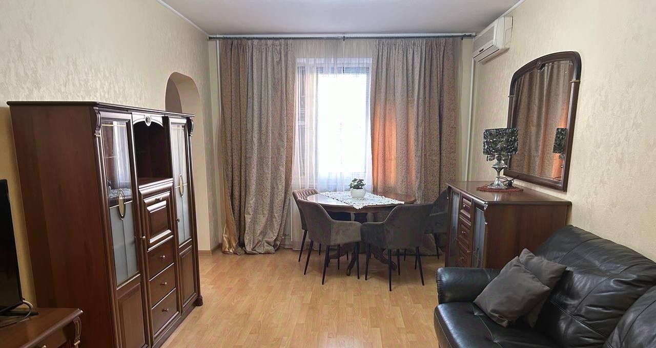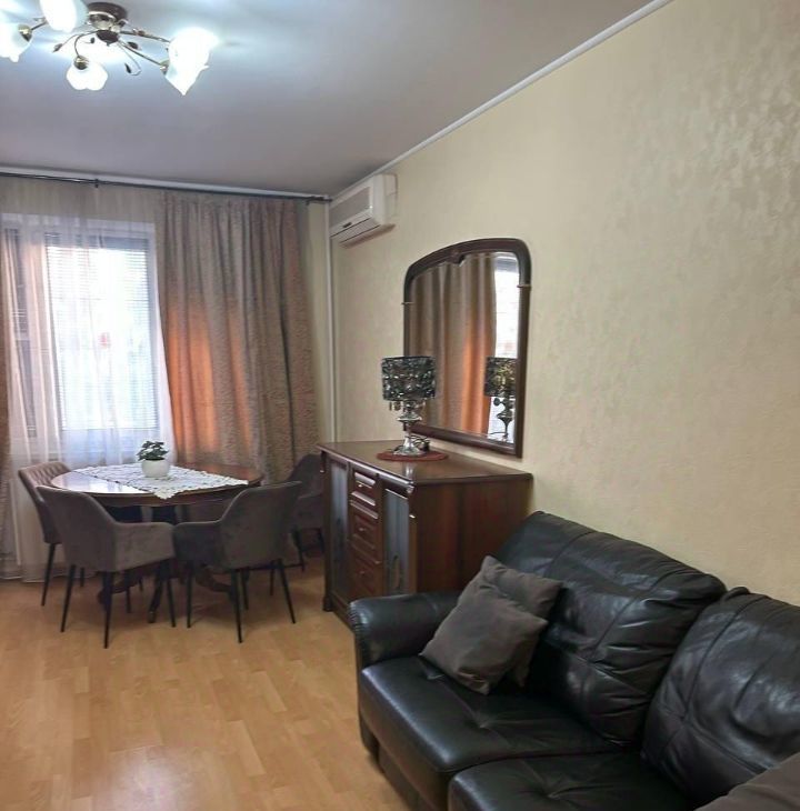 Сдается просторная трехкомнатная квартира, площадью 76 кв. м, на 3 этаже 17-этажного дома. Дом построен в 2002 году, материалы — панели. Жилая площадь квартиры составляет 45 кв. м, кухня — 9 кв. м. Потолки высотой 2.7 метра. Квартира расположена всего в 7 минутах пешком от станции метро "Юго-Западная".