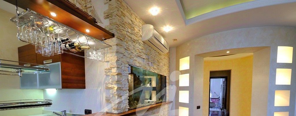 В гостиной установлен встроенный аквариум, придающий уют квартире, обслуживание которого входит в стоимость.