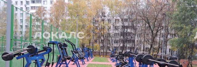Есть спортивное уличное оборудование. Беговые дорожки. Рядом парк.