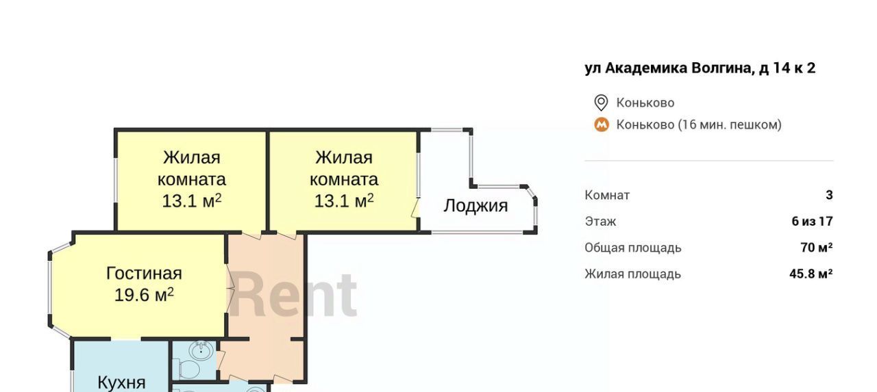3-к кв. Москва ул. Академика Волгина, 14К2 (70.0 м²)