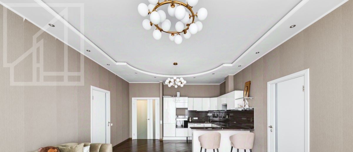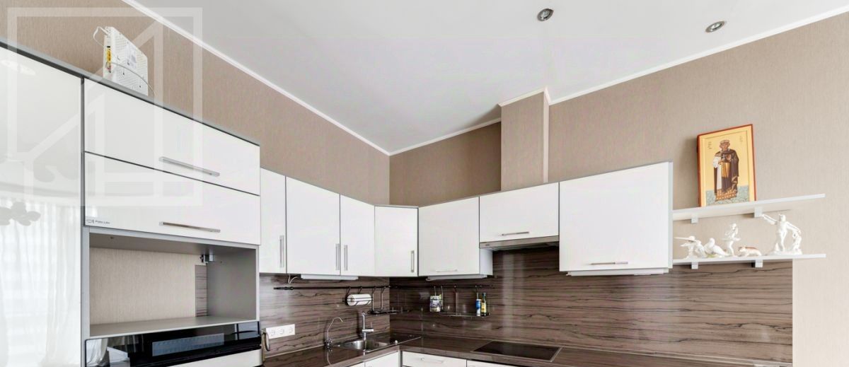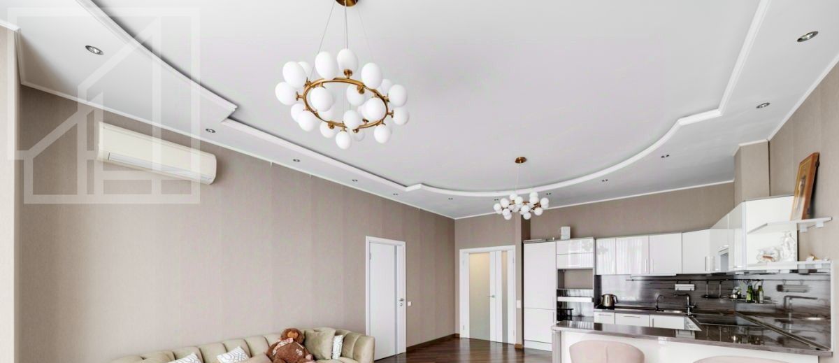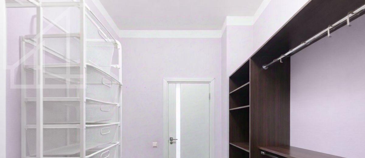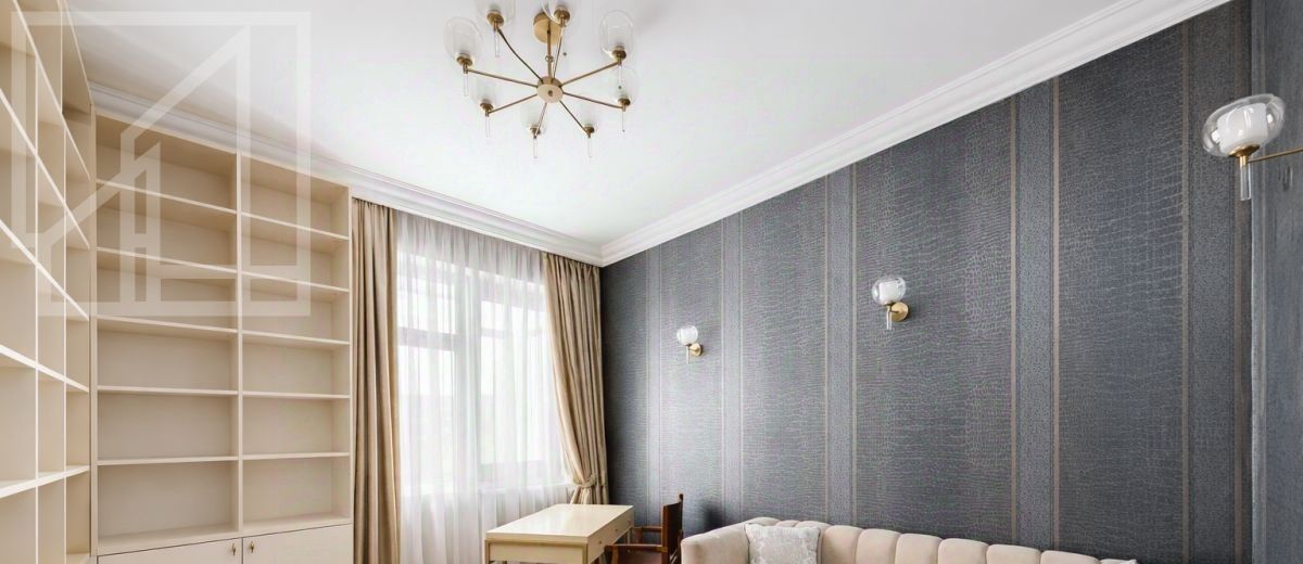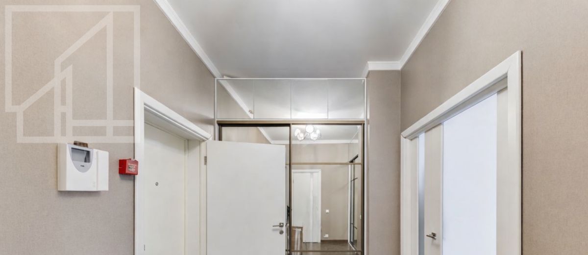 Планировка: гостиная-кухня, одна спальня, кабинет, гардеробная, один совмещенный санузел и гостевой санузел. В квартире выполнен современный авторский ремонт. Окна выходят на внутренний двор дома. В квартире установлена система кондиционирования, система подогрева полов.