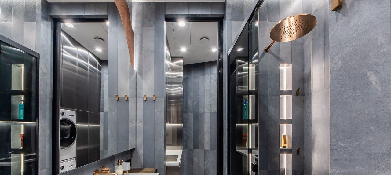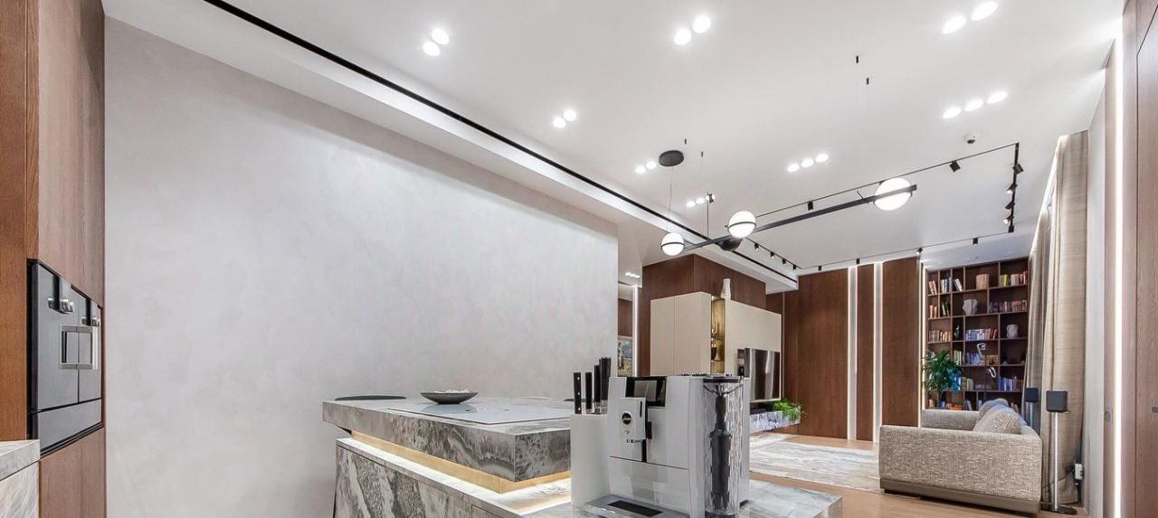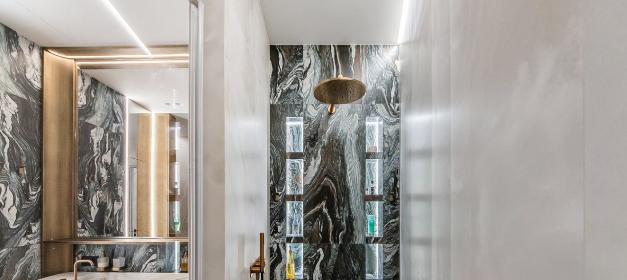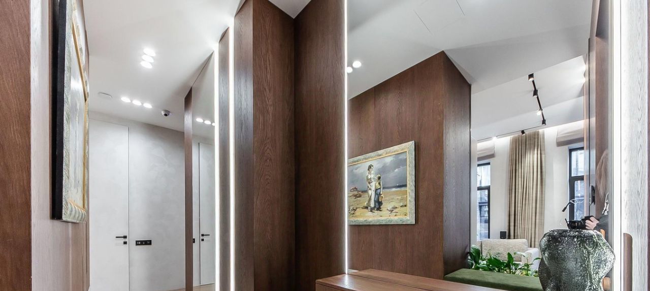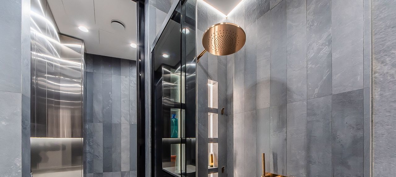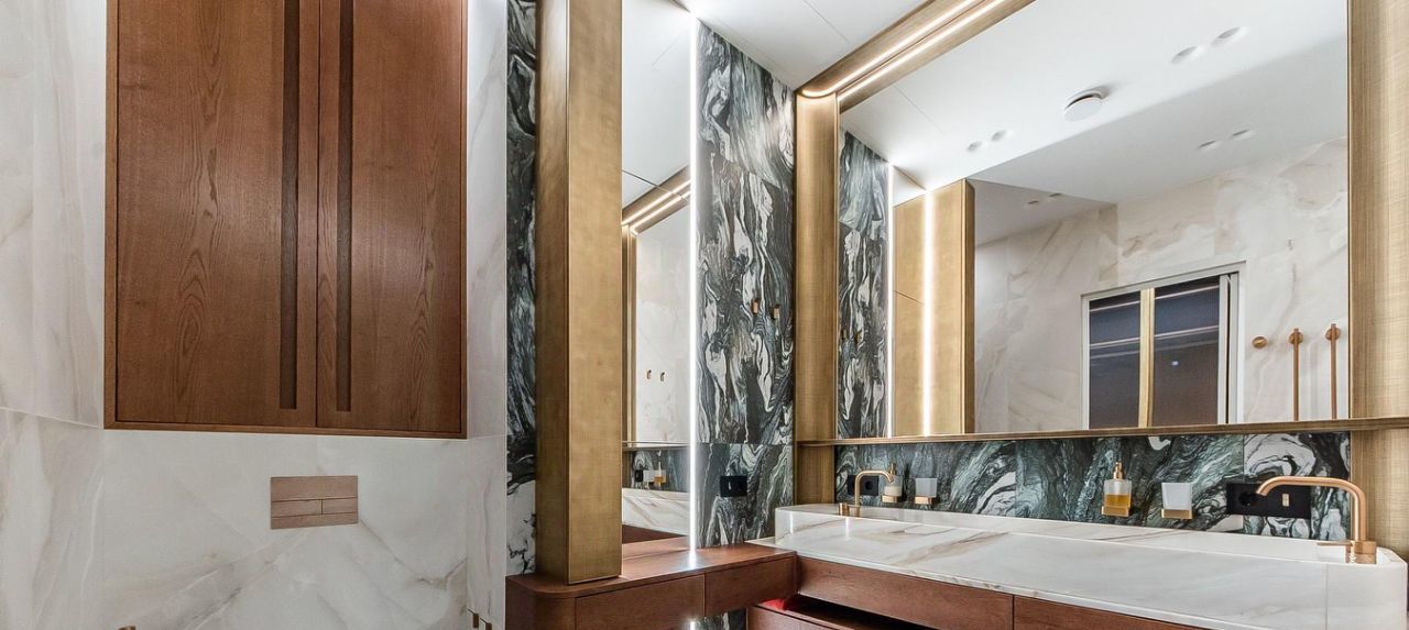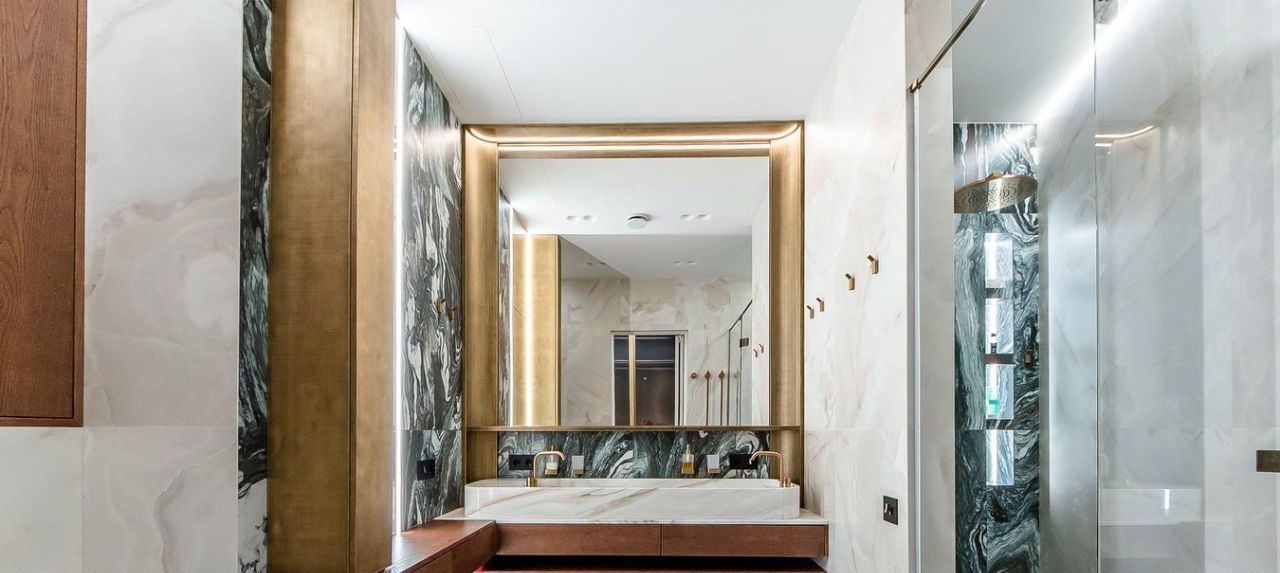Материалы: полы инженерная доска FINEX, керамогранит Refin; освещение Flos. Zenith; смесители Gessi; розетки и выключатели Fontini; корпусная мебель индивидуального пр-ва.