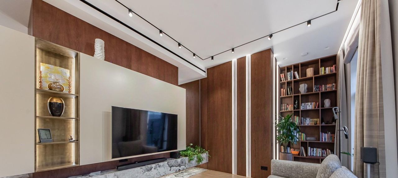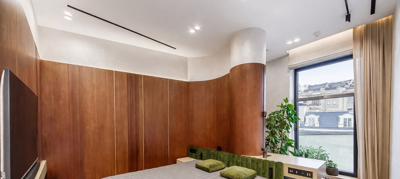 Выполнен уникальный авторский ремонт c использованием премиальных, натуральных материалов. Планировочным решением предусмотрено: зона кухни-столовой, объединенная с гостиной, площадью 38,5 кв.м; мастер-спальня, площадью 25 кв.м, с просторными гардеробной и ванной комнатами; детская комната с рабочими зонами и видом в сад; вторая ванная и постирочная. Приточно-вытяжная система вентиляции, центральная система кондиционирования.