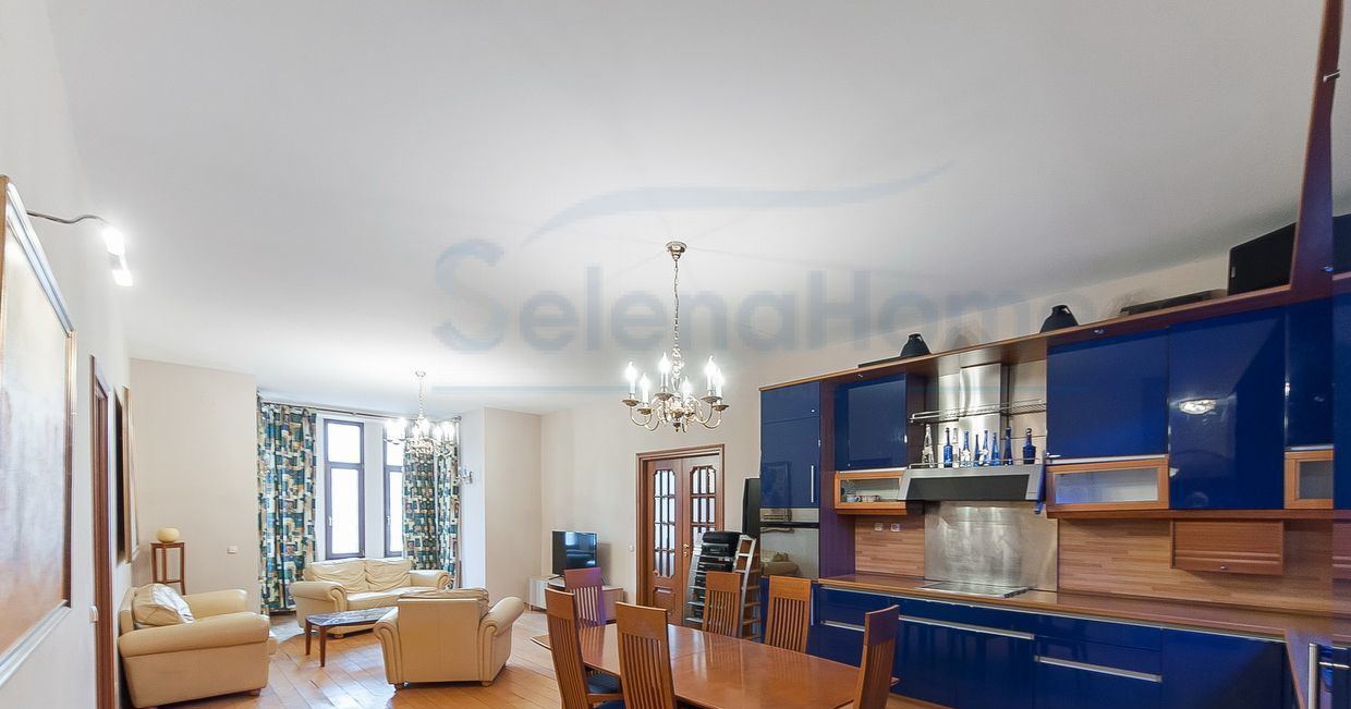 Предлагается светлая 3-х комнатная квартира в красивом фасадном доме на старом Арбате. ТИХО, несмотря на то, что все окна выходят на улицу. В квартире выполнен современный ремонт с применением качественных материалов. Квартира полностью меблирована и укомплектована всей необходимой бытовой техникой от мировых производителей. Планировка: Гостиная-столовая-кухня (30 кв м); 1 спальня (18 кв м), со своим санузлом, в котором оборудована сауна; кабинет (15 кв м). можно переоборудовать в спальню. Высота потолков 3.20м. В спальне и прихожей шкафы. Кондиционеры, бойлер, теплый пол, спутниковое ТВ, высокоскоростной Интернет. Подогрев полов. Огороженная территория дома. Парковка в закрытом дворе.