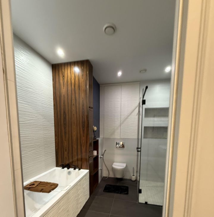 - Трёхкомнатная квартира с дизайнерским ремонтом, полностью оборудована всем необходимым и готова для проживания.