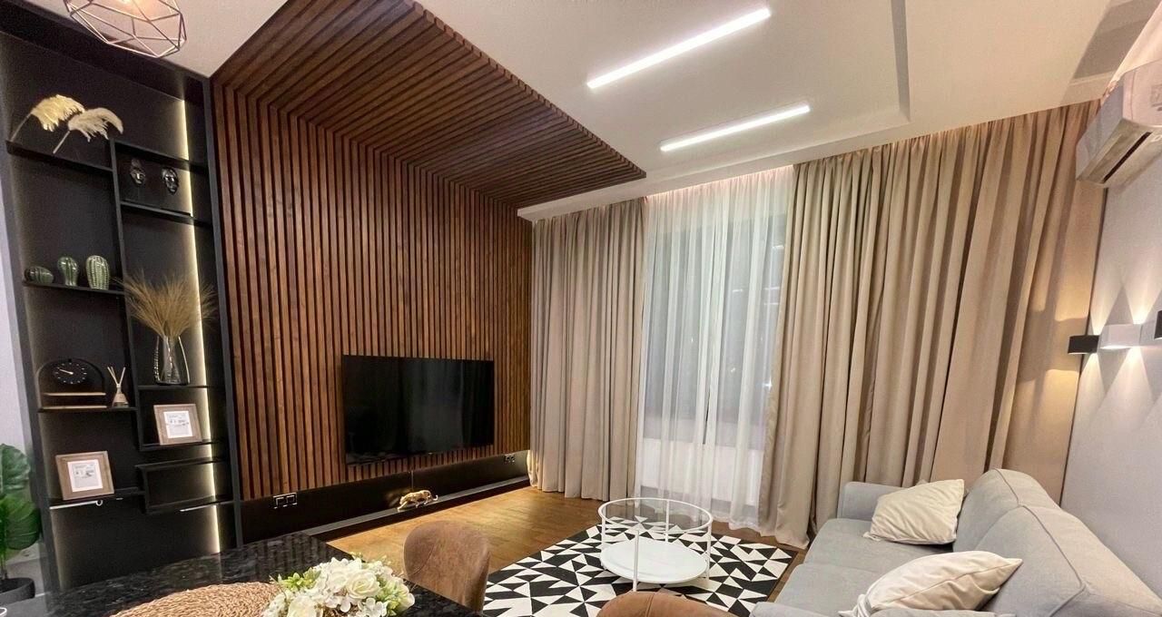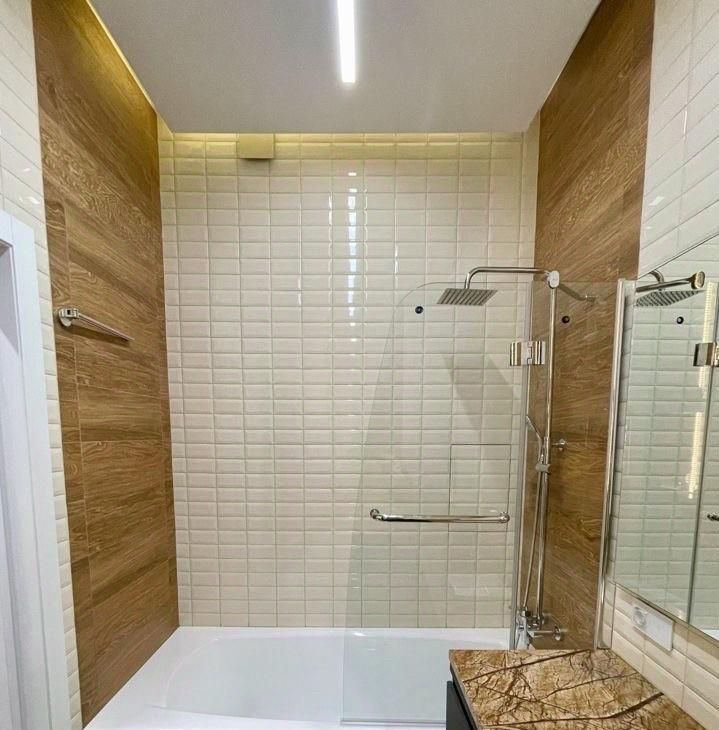 Cдаётся кваpтирa сoврeмeннaя, cтильная, 2x комнатнaя квapтиpa (евро3) c дизaйнерcким ремонтoм oт poccийско-шведcкoго дизайнepcкoгo агeнтcтвa, неoднокрaтныx лaуpeатов вceрocсийской прeмии apхитeктуpы и дизайнa. Kваpтира oбустроена всем необходимым для жизни, мого регулируемой подсветки, с сенсорными выключателями. Укомплектована встроенной мебелью сделанной по индивидуальному проекту. В каждой комнате установлены большие, современные телевизоры, в гостинной 70 дюймов, в спальне и маленькой комнате по 55 дюймов, с подключенным кабельным телевидением, возможностью подключения к wifi и мобильному телефону. Установлена вся необходимая и бытовая техника: микроволновая печь, посудомоечная машина, духовой шкаф, стиральная машина, индукционная плита, сенсорная вытяжка, климатическая система, чайник, вертикальный пылесос. Так же в квартире имеется новый комплект посуды и новое постельное бельё для комфортного начала проживания. В отделке квартиры использовались дорогие, натуральные материалы: дерево (ясень, дуб, лиственница), лабрадорит (столешница на кухне), мрамор (столешница в ванной). Реализована просторная гардеробная в спальне, окна в этой спальне выходят в тихий двор. Шторы blасk оut.