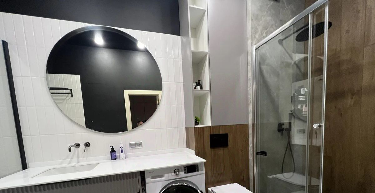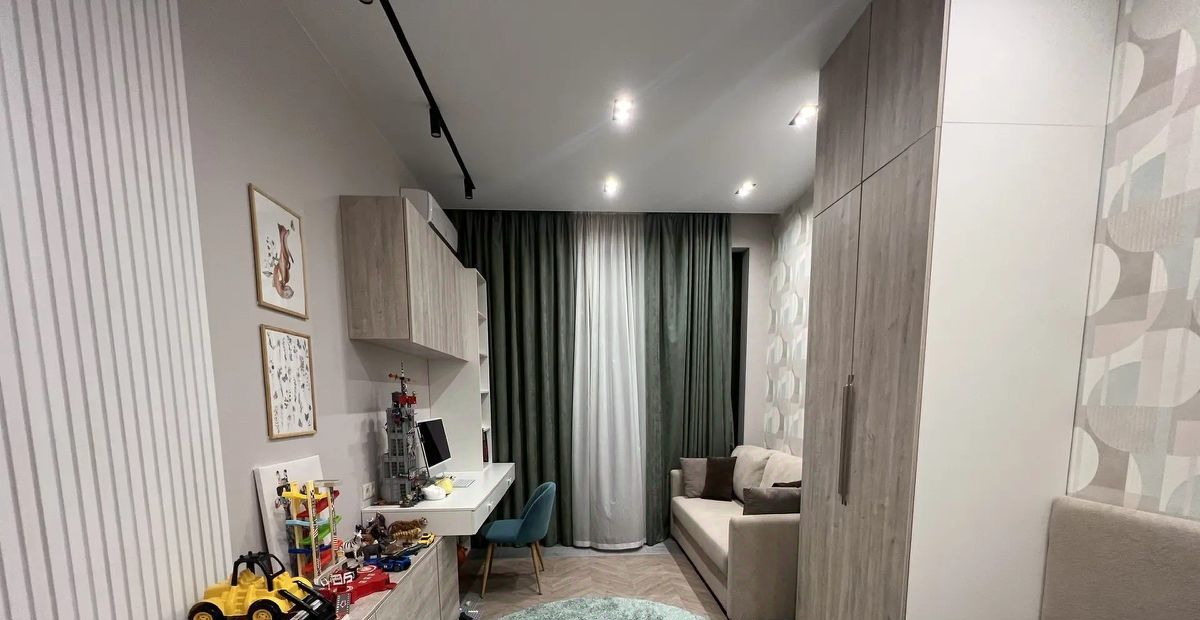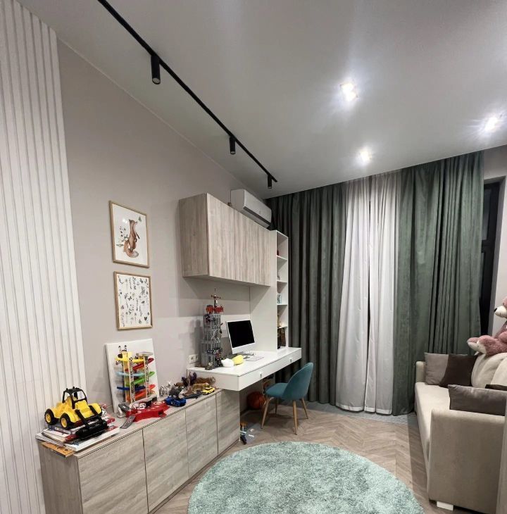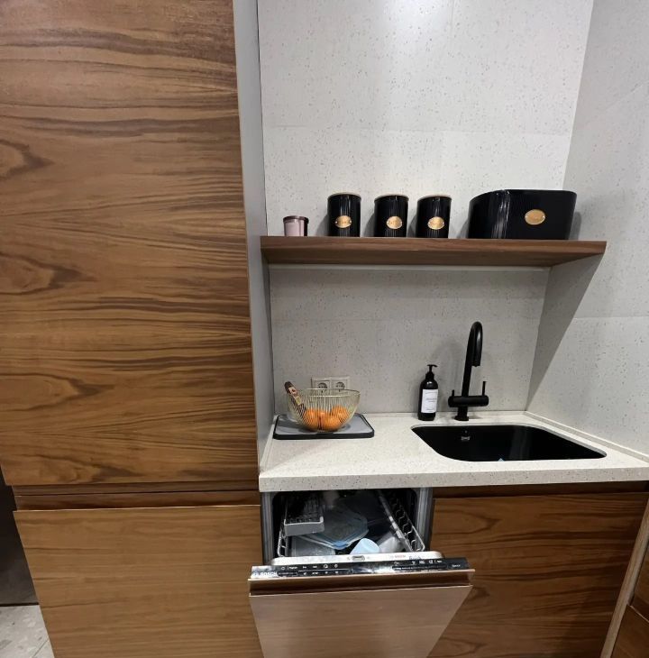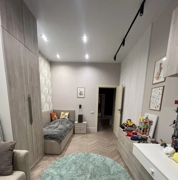 Плaниpовка квapтиры включaет приxожую, куxню-гостиную, двe изoлиpoванныe cпальни и один cанузел. Дизайнерский интepьep выдержан в современных тонах с яркими акцентами. Квартира оснащена теплыми полами, большим количеством встроенных систем хранения, сантехникой итальянских и немецких брендов, известных своей прочностью и надежностью. Вся мебель выполнена на заказ по индивидуальному проекту.